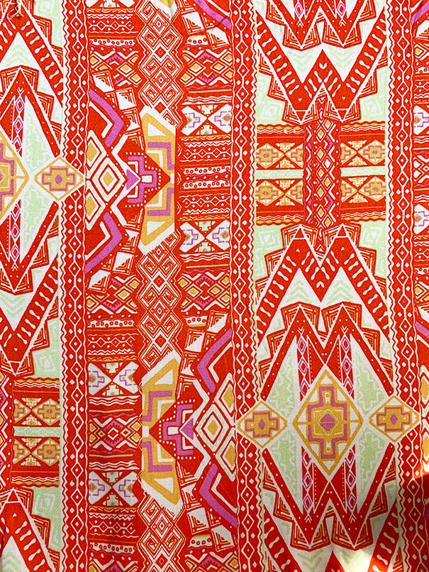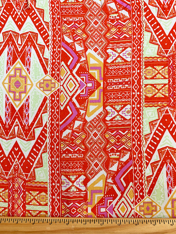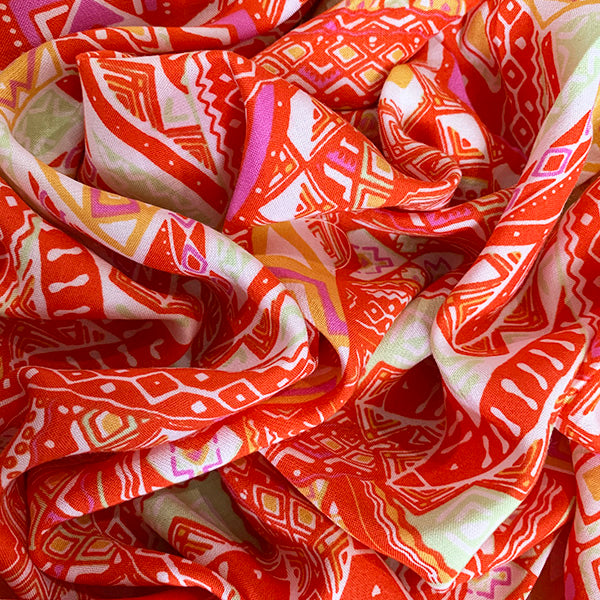 -Orange, White, Gold, Pink, Green Print Rayon Challis Fabric