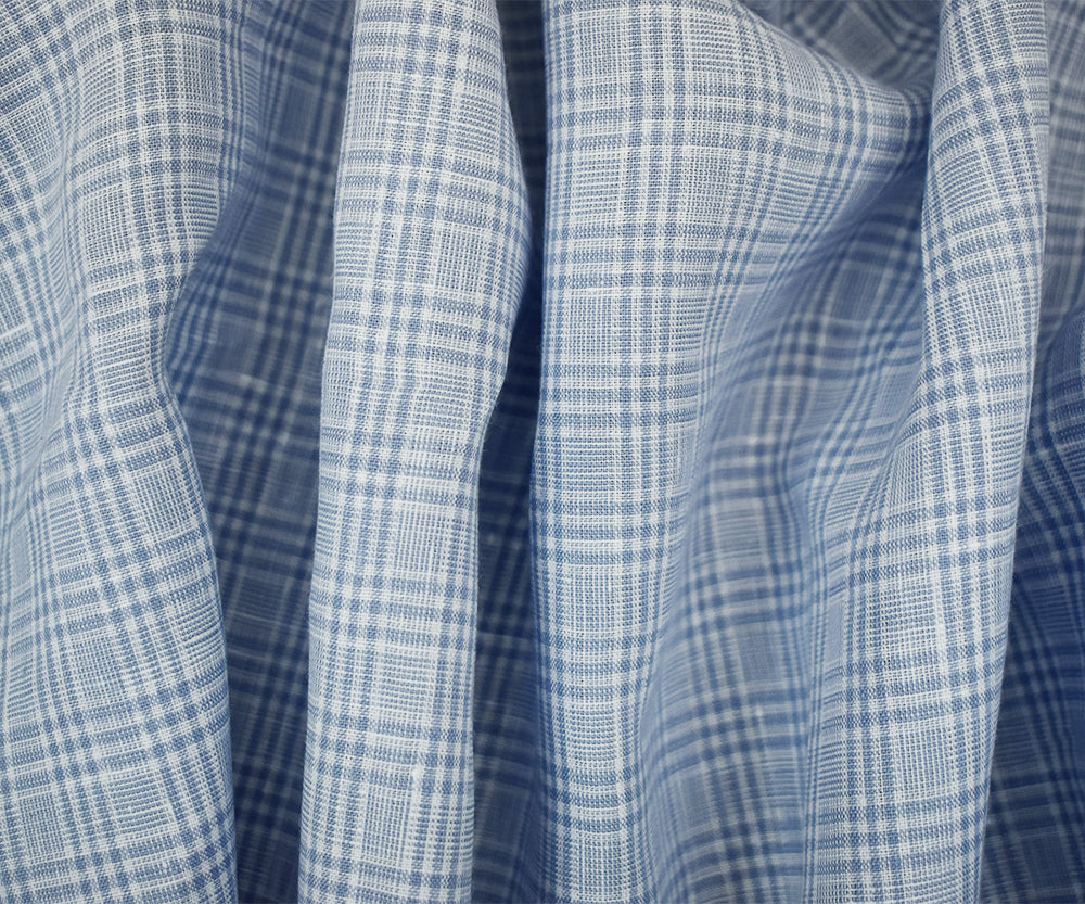 White-Blue Spence Bryson Plaid Irish Linen Woven Fabric