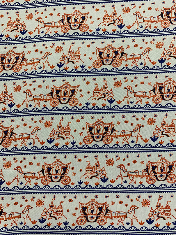 White Multi Horse Carriage Stripe Rayon Challis Fabric