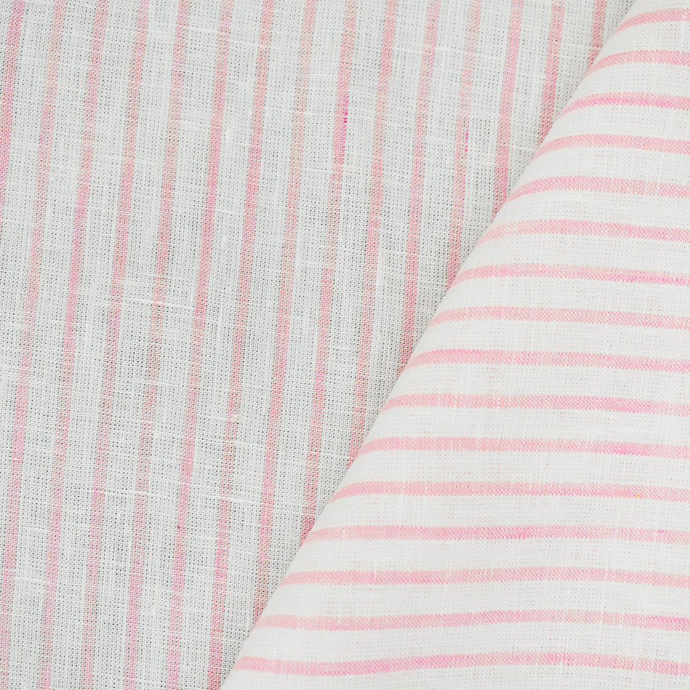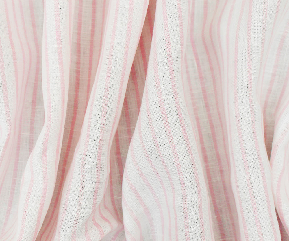 White-Pink Striped Spence Bryson Striped Washed Irish Linen Woven Fabric