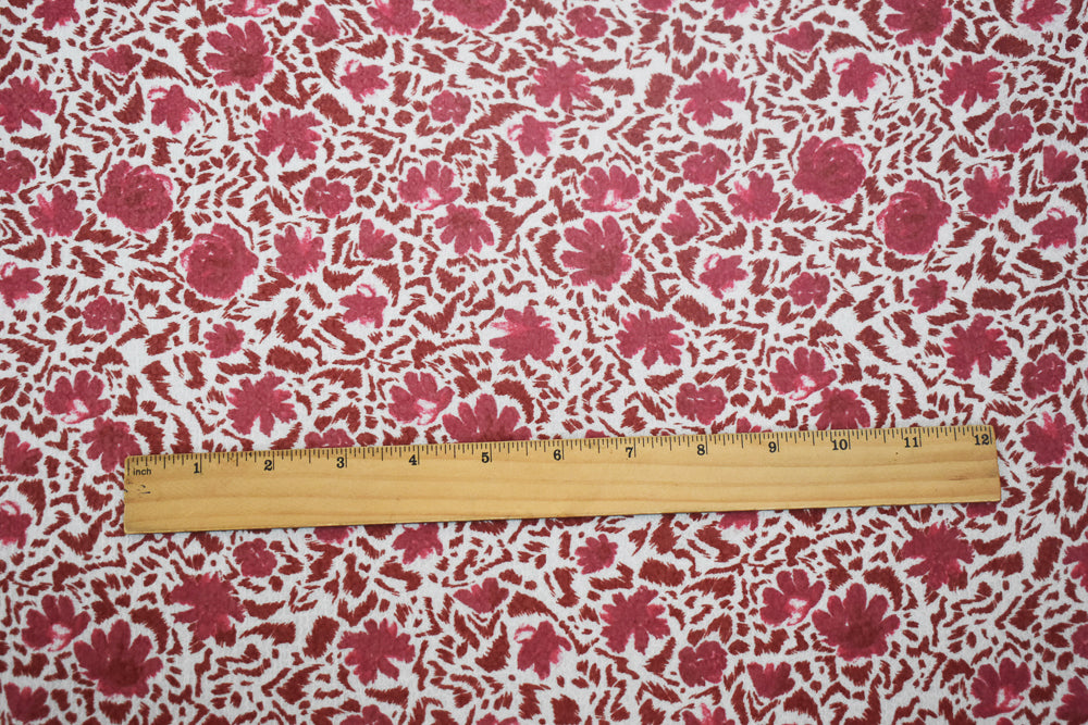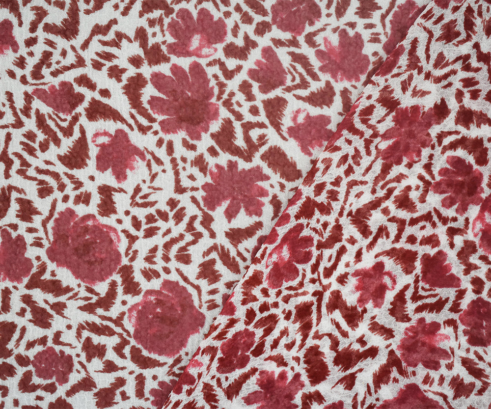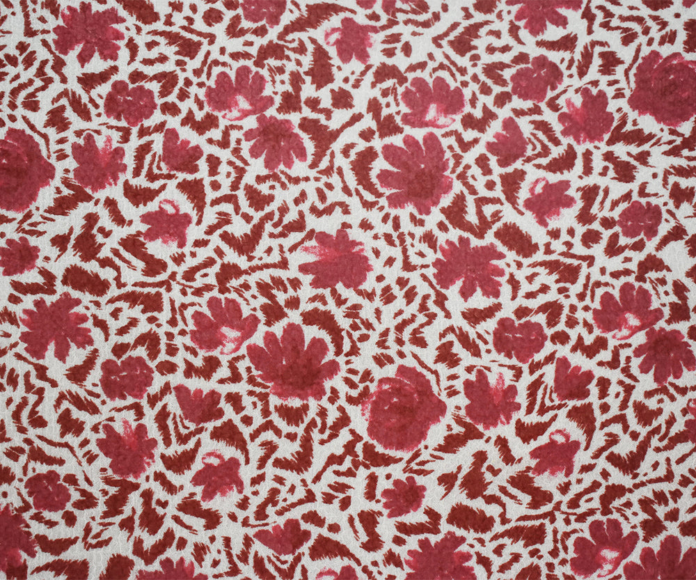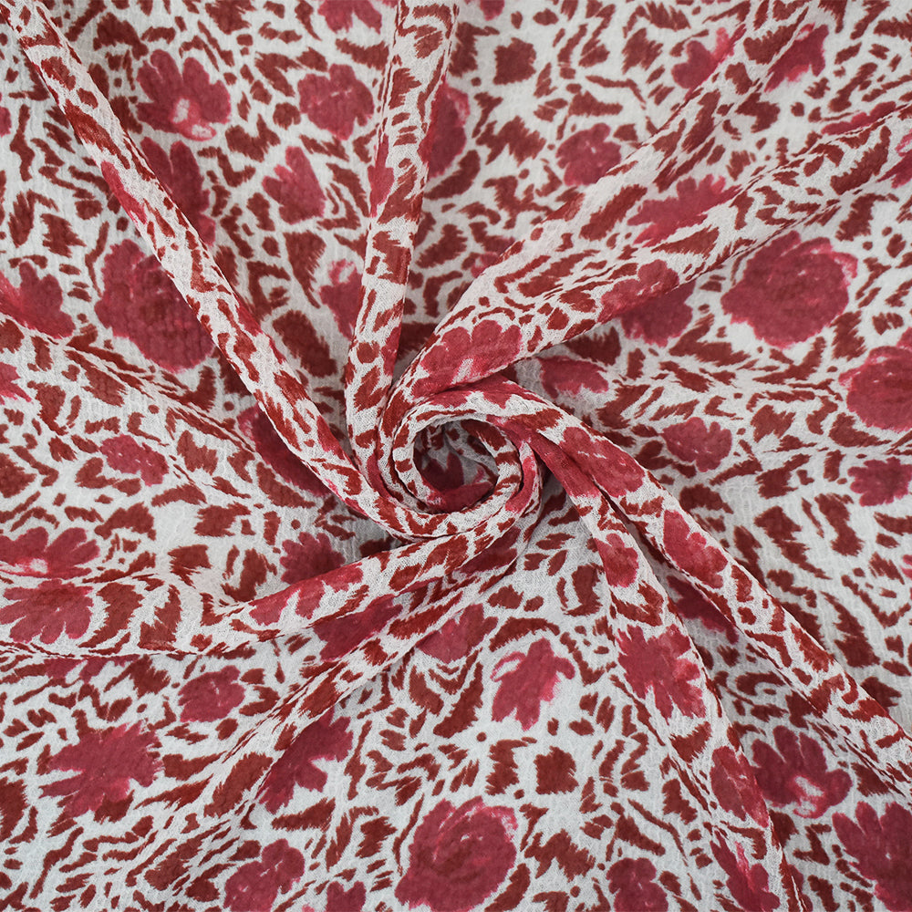 White-Red Abstract Floral Printed Poly Crinkled Chiffon Woven Fabric