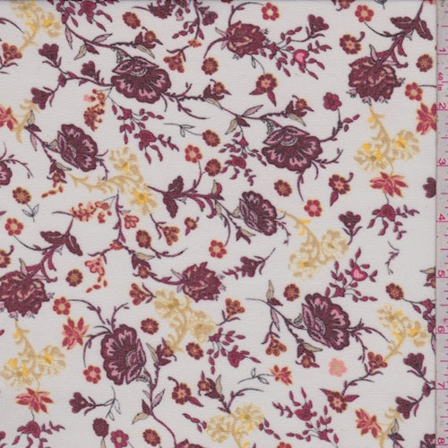 White/Wine/Sand Stylized Floral Georgette Fabric
